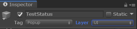 The above will resolve to the first instance of an object with the name “TestStatus” and the tag of “Popup”, regardless of where it exists in the scene hierarchy.